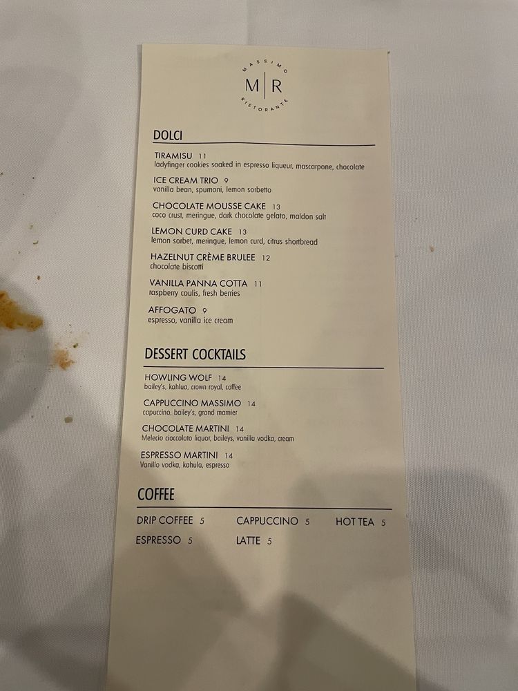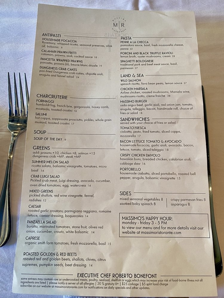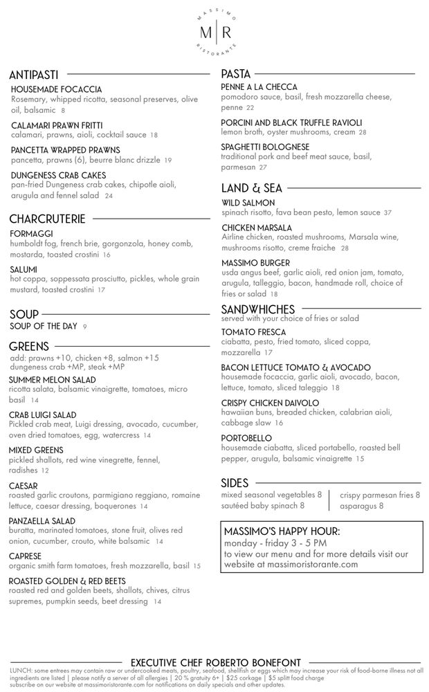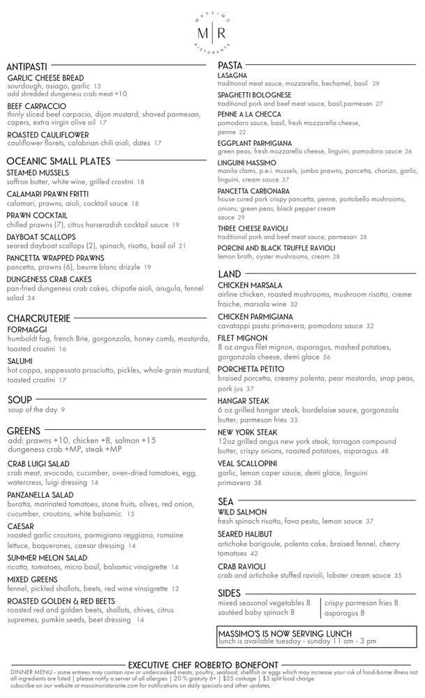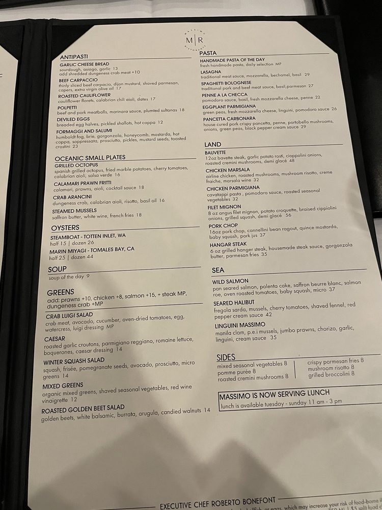 Introducing the menu at Massimo Ristorante, an Italian gem in Walnut Creek, CA that offers a sophisticated dining experience. With a focus on seafood and a variety of vegetarian options, this classy venue is perfect for groups and special occasions. The menu boasts dishes like perfectly cooked veggies, rich affogato, decadent ice cream, and a light and sweet tiramisu. Customers rave about the generous pasta portions, flavorful crab cakes, and well-paired wines. While some reviews note minor service hiccups, the overall consensus is positive, with diners eager to return for another delicious meal. Massimo Ristorante combines great food, attentive service, and a warm ambiance, making it a must-visit destination for Italian cuisine lovers.